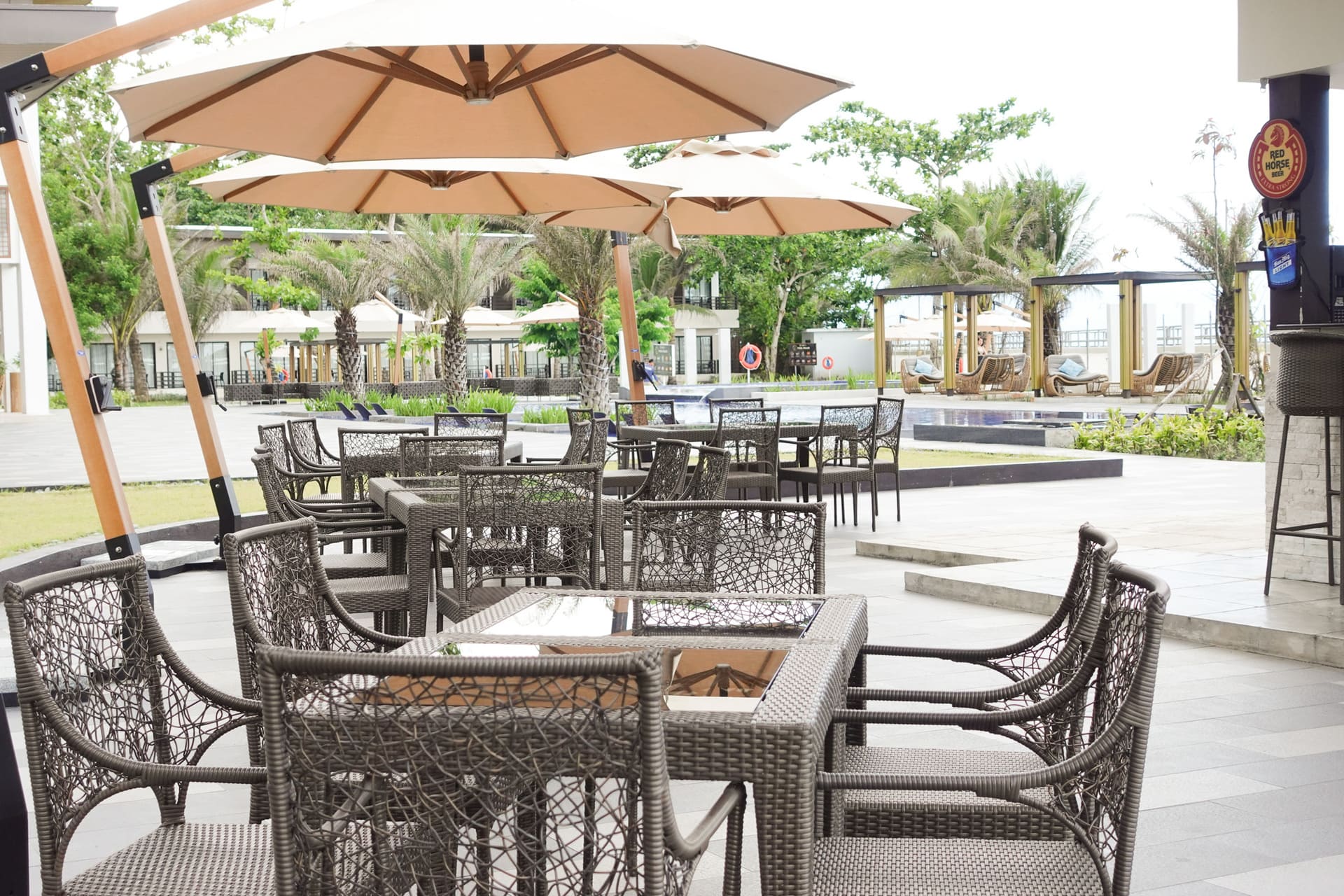 Enjoy refreshing drinks next to the pool in a relaxing tropical setting.